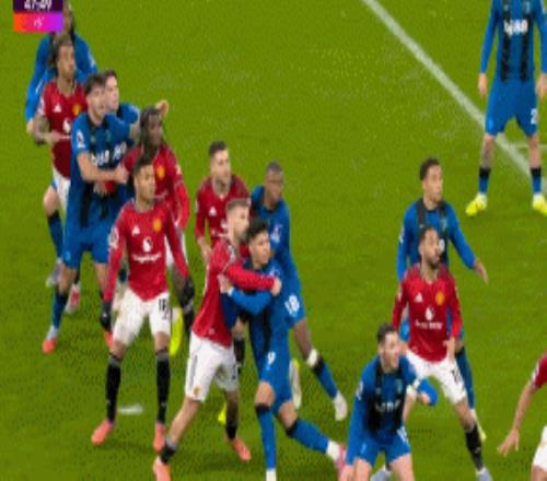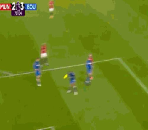 上半场补时,曼联任意球机会,伯恩茅斯球员有明显的手球,裁判却再次没有表示,只是判罚了角球。